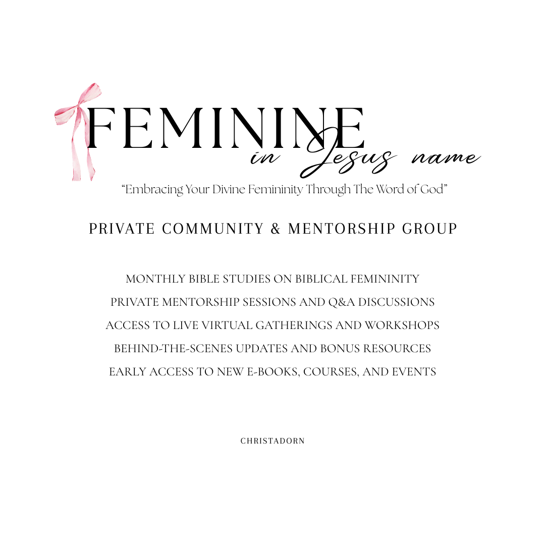 This space was created for women who long to embrace their divine femininity, grow deeper in God’s Word, and live boldly and beautifully in Christ. Through Feminine In Jesus' Name, we are reclaiming womanhood according to God’s original design — full of grace, strength, beauty, and purpose.